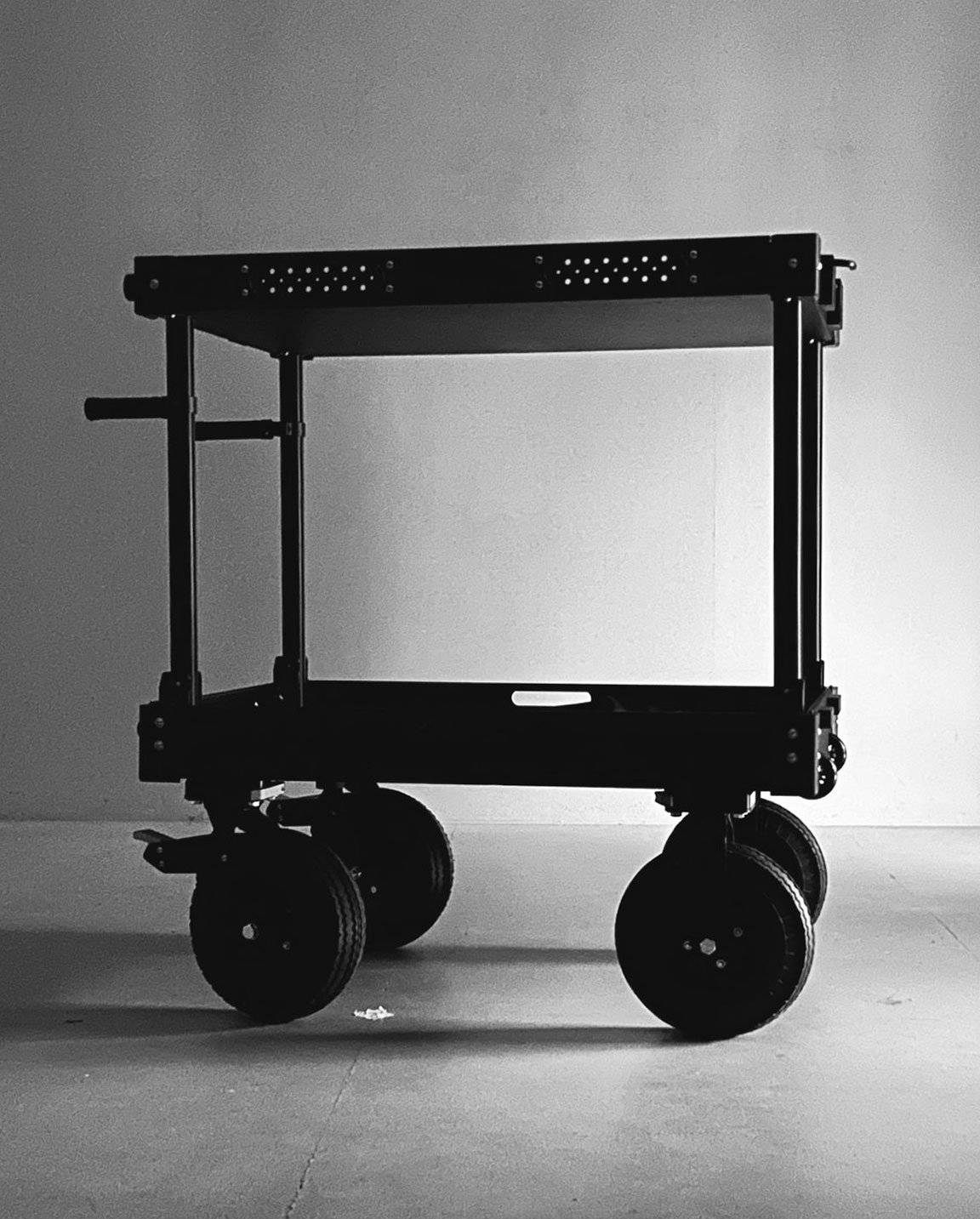 Karton n’est pas un simple chariot : c’est notre compagnon de route, fidèle sherpa des tournages et des résidences. Modèle Voyager NXT de la maison Inovativ, il transporte caméras, ordinateurs et rêves numériques avec une élégance à roulettes. Solide comme un roc mais toujours prêt à plier bagage, il est devenu presque un membre de l’équipe – sauf qu’il ne réclame ni café ni pause déjeuner.