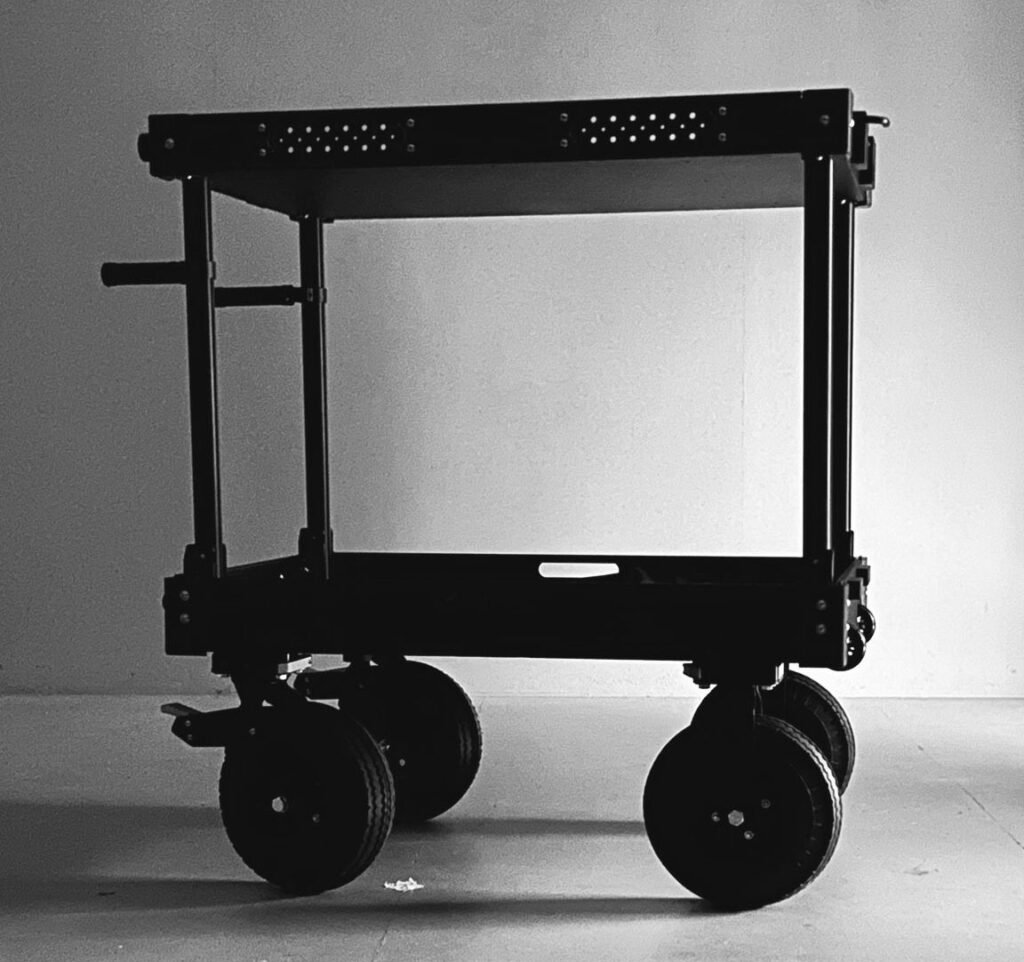 Pourquoi “Karton” ? Parce qu’il est le cart qui accompagne désormais nos productions, le compagnon solide et pratique qui nous permet de transporter et protéger tout notre matériel. Avec lui, fini les installations dispersées : ordinateurs, capteurs, tenues de motion capture (MoCap), capteurs de mesure d’activité électrodermale (EDA), matériel son, caméras de référence et tous les accessoires nécessaires trouveront leur place, en sécurité et bien organisés.